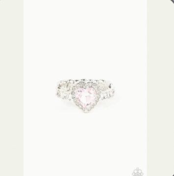 Bordered in a glassy frame of dainty white rhinestones, a Pink heart shaped gem sparkles atop a silver band dotted in brilliant white rhinestones for a romantic finish. Features a dainty stretchy band for a flexible fit.